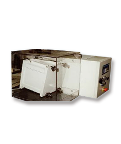 地毯耐磨牢度测试仪包含两个带有立方体形状可移动盖子的测试箱。每个测试箱测试两个地毯样品,用双面胶把样品固定在盖子表面。每个测试箱中放置两个加重的橡胶管,然后关上盖子。测试箱以50转/分钟的速度进行旋转直至达到预设的转数值,旋转方向是周期性变化的。