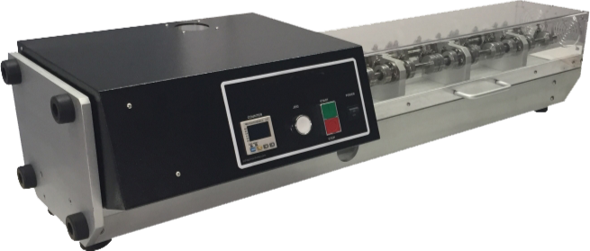 弯折测试仪一般用于评估织物(或皮革)耐弯折疲劳性能。该设备为台式,有14个测试工位,每个测试工位包含用于试样卷绕后固定试样的相应夹具。