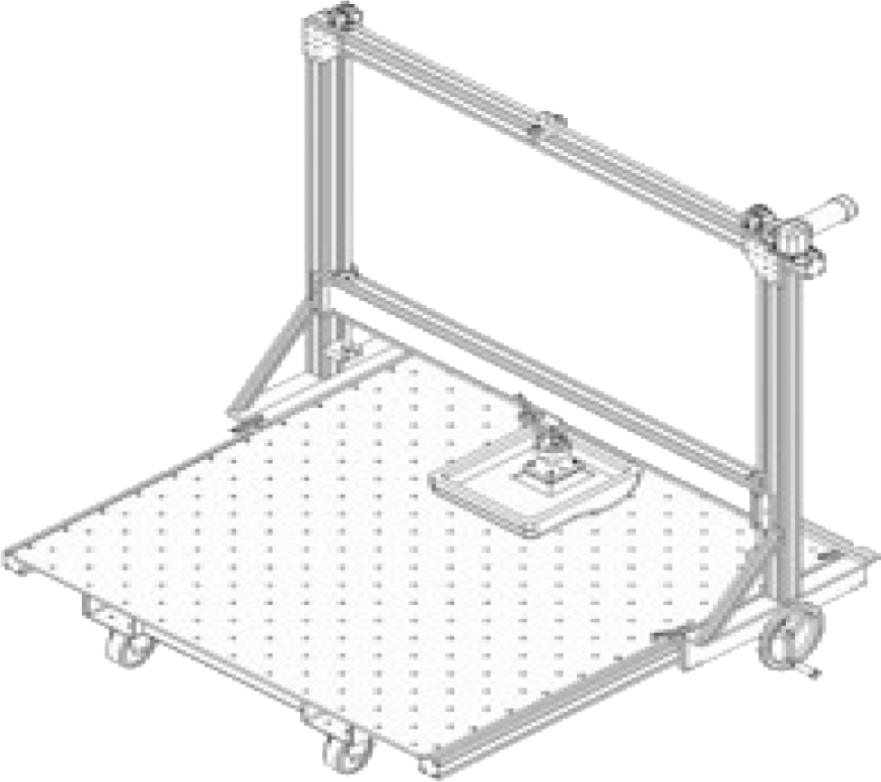 台架通过位于机架底部一个手动曲柄往X方向移动。Y定位调整是通过松开设备上的快速锁定手柄,滑动台架脚到所需位置,并在适当的位置重新锁定台架脚。