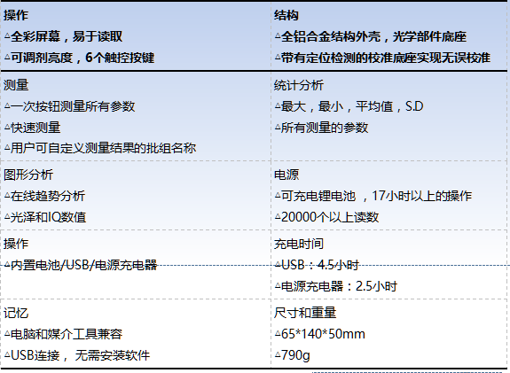 Phopoint IQ可以测量成像质量,只是唯一一款描述光是如何从物体表面反射的手持式表面光学检测仪,传统的光泽仪仅仅能否测量出被反射光的数量,但是无法测出成像质量对敏感的的影响。