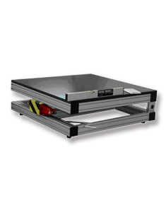 通过一个机械升降机和一个数字角度计设定角度,载重100kg,此设备是落地式,支架可调节;数字角度计精确度±0.1度。
