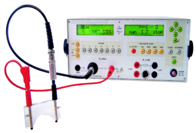 高欧姆电极测量仪 HOF 1 可根据标准 DIN 65181 测试航空航天工业中高导电层的表面电阻。