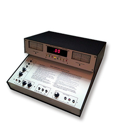 显示:指针式充电电压表(右)、指针式试样电压表(左)、数显计时器(中),彩色LED灯指示各个操作进程;