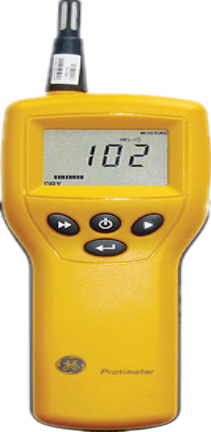 湿度表-探测模式:在湿度表背面突起有无线电发射装置,将其贴在被测表面,可不用破坏被测表面或在其上穿孔测量出表面内的湿度。