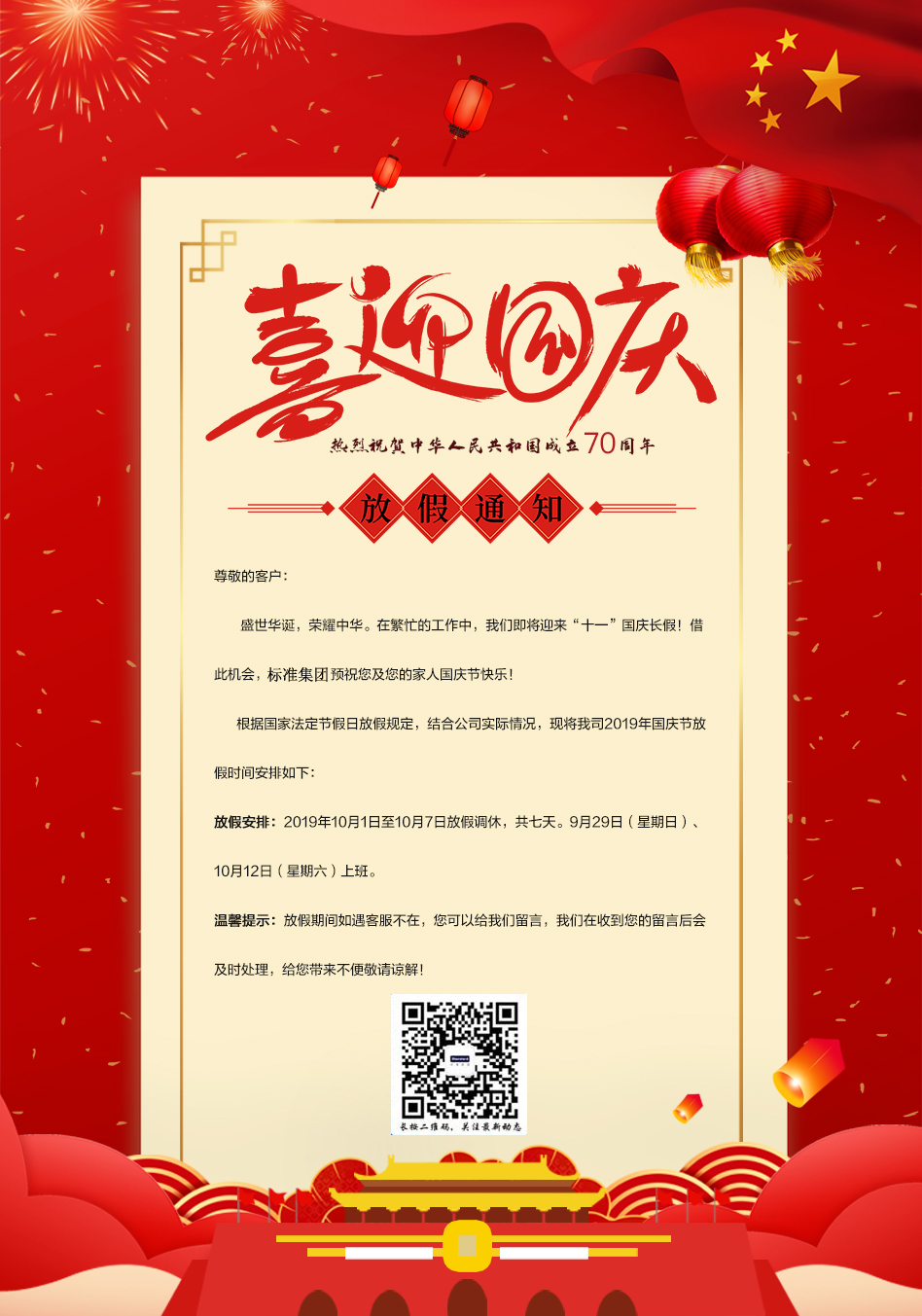 标准集团2019年国庆节放假通知