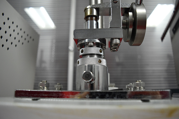 3、钳力测试“底部织物钳砧”上面有凹面垫圈,是用来保证不平的面料别压紧的。长期使用之后会出现垫圈变形的现象,就无法固定试压品了。