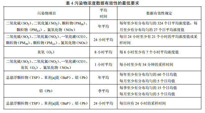 6.4 任何情况下,有效的污染物数据均应符合表 4 中的低要求,否则应视为无效数据。