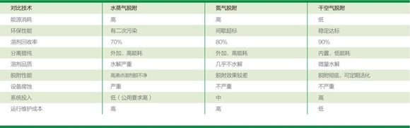 首先对三种脱附冷凝方式分析对比。常见的脱附冷凝方式则包括蒸汽脱附、氮气脱附和空气脱附三种模式,分析对比如下: