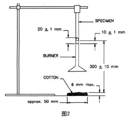 如果在试样燃烧过程中,有熔融物或滴落物时,应将喷灯倾斜45度,以免有熔融滴落滴进喷灯口,对试样施加10s0.1s的时间后,应立即移开喷灯,至少移开距试样150mm的距离,使其不对试样的续燃产生影响。详见图2。