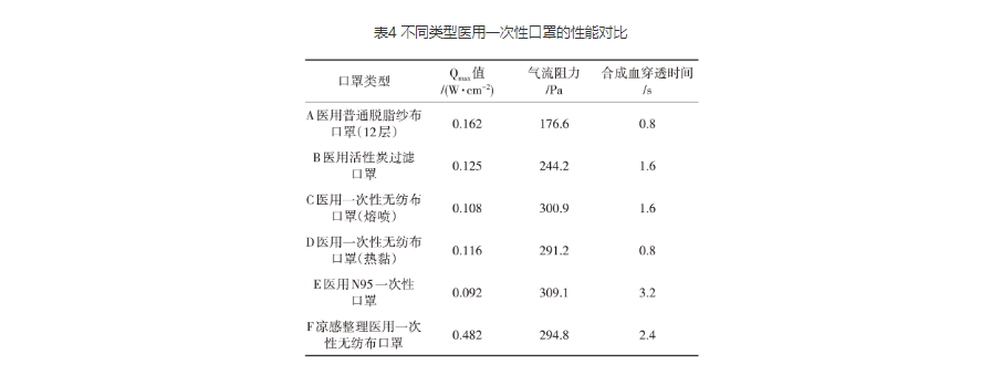2.3 不同类型医用一次性口罩的性能对比