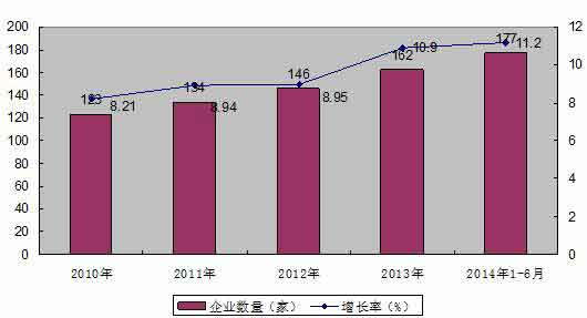 行业总体概述一、2010-2014年行业企业数量发展状况