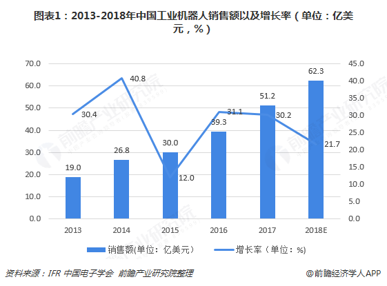 当前,中国生产制造智能化改造升级的需求日益凸显,工业机器人的市场需求旺盛。据IFR统计,2017年中国工业机器人销量达13.8万台,预计2018年销量将超过15万台,市场规模将达到62.3亿美元。到2020年,国内市场规模将进一步扩大到93.5亿美元。