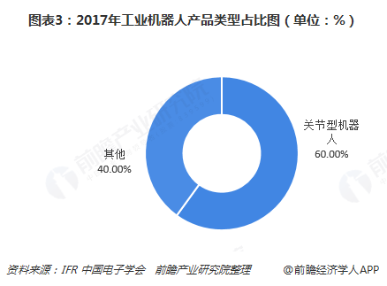 按产品类型来看,2017年关节型机器人销量占比超60%,是国内市场主要的产品类型;其次是直角坐标型机器人和SCARA机器人,且近年来两者销量占比幅度在逐渐扩大,上升速度高于其他类型机器人产品。